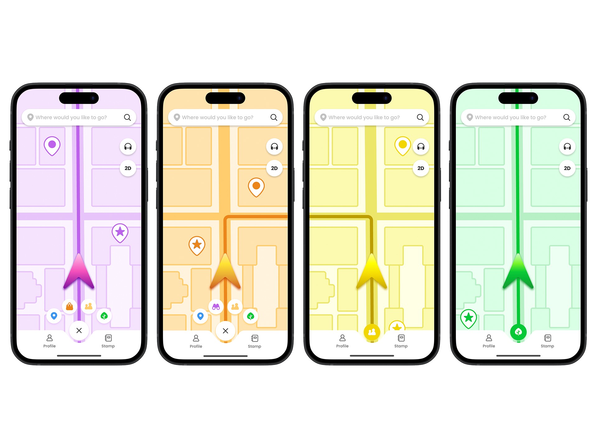 Walk navigation works in the exploration screen (* It has 5 different map modes. Free roaming / Sight-seeing / Shopping / Community / Nature mode)